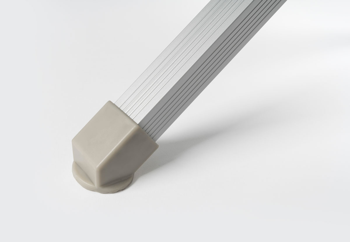 Geschraubt, nicht genietet: das verschraubte Mittelstück ermöglicht den beschädigungsfreien Austausch des Bezugs zum Ersatz oder zur Reinigung.